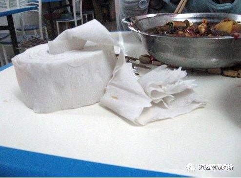 在一些路边餐厅我们会看到一些这样的纸,还有一些不规范的卫生纸会含有一些掉粉的现象,油墨,有机溶剂,细菌含量会严重超标。很多小餐馆用的纸巾都没有厂家可循,我们用不掉的时候抱着节约的态度,就拿回家偶尔用一下,但是用含菌量较高的卫生纸擦拭面部时,对于一些屏障功能不好的人,就会容易造成面部的细菌感染。更不能将卫生纸用来擦嘴和一切可能人口的物品,尤其是一些劣质卫生纸,细菌含量很可能超标,用来擦嘴容易吸人细菌,引起肠胃疾病。建议使用正规厂家出厂的餐巾纸擦拭面部。